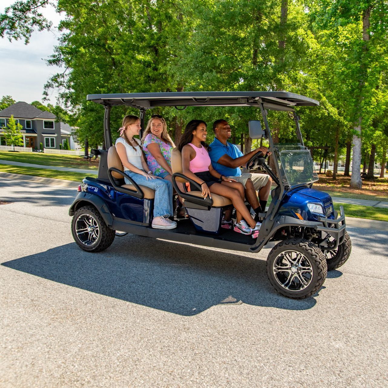 The Club Car Onward is available in 2, 4, or 6 passenger configurations and either non-lifted or lifted to match your needs. Paired with available gas or electric drive options you can go further with Onward.